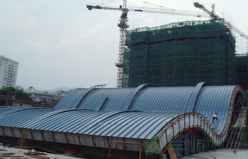 正是由于兩者支撐構造的不同,兩者的抗負載強度也就不同。所以金屬屋面工程中,特別是大跨度建筑屋面,多采用強度更高、更穩定的YX65mm高立邊鋁鎂錳板屋面構造。